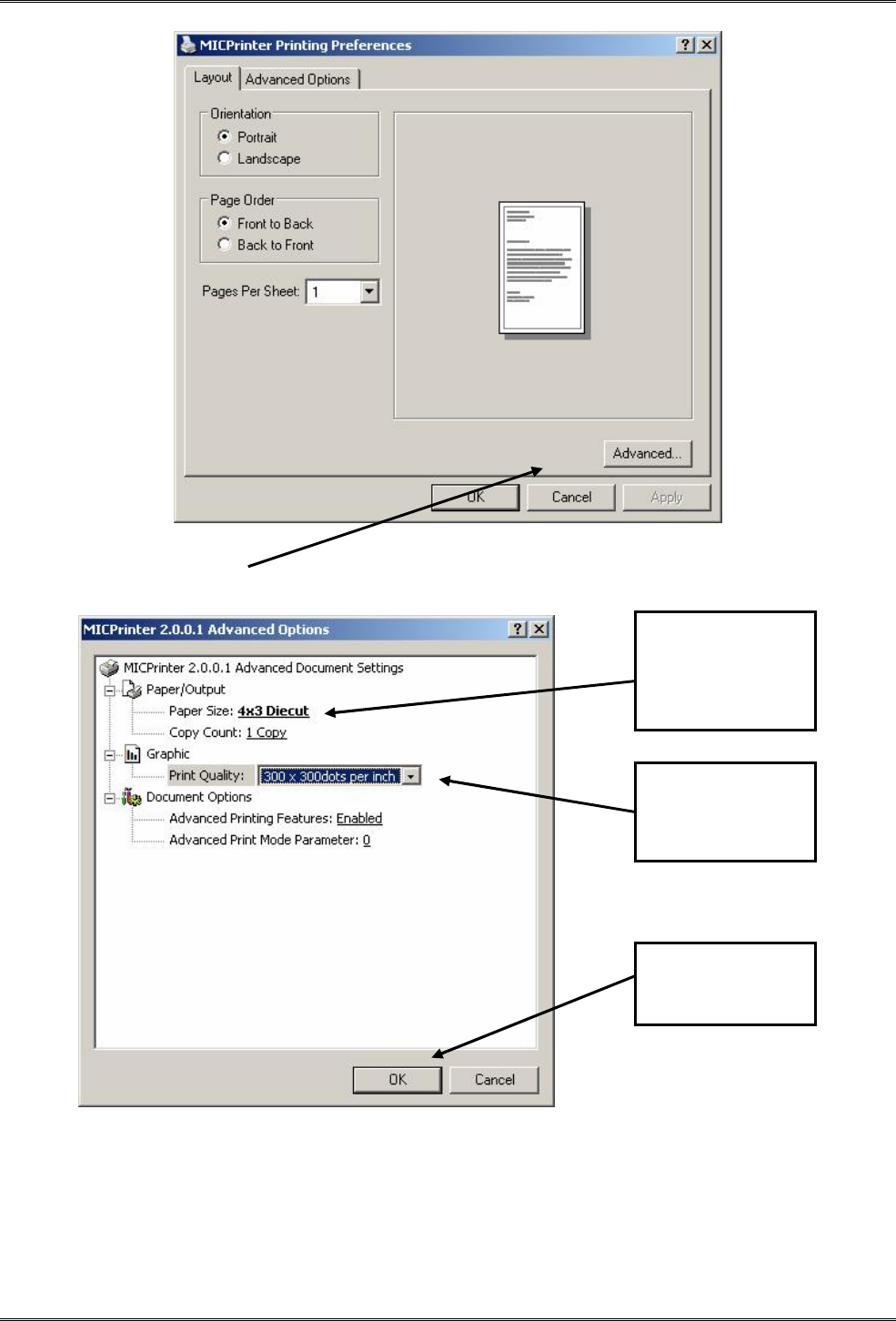 Now we return to the MICPrinter Properties page.