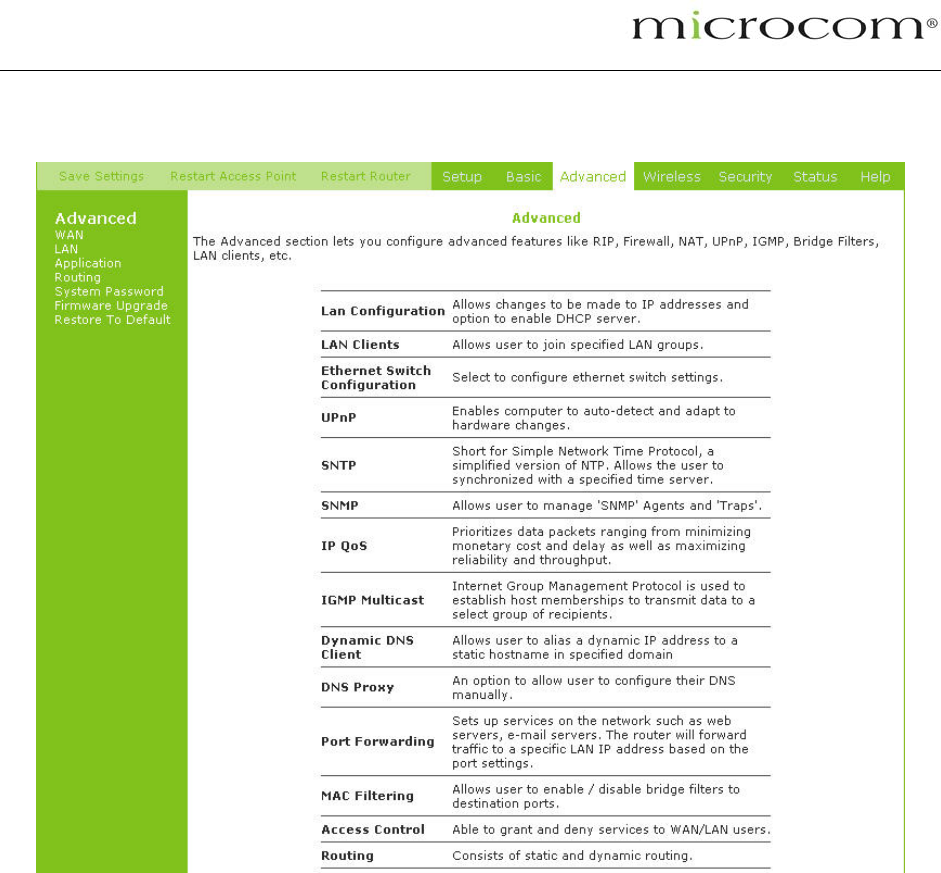 This mode is catered for advance users, a brief explanation of the links are listed as shown below.