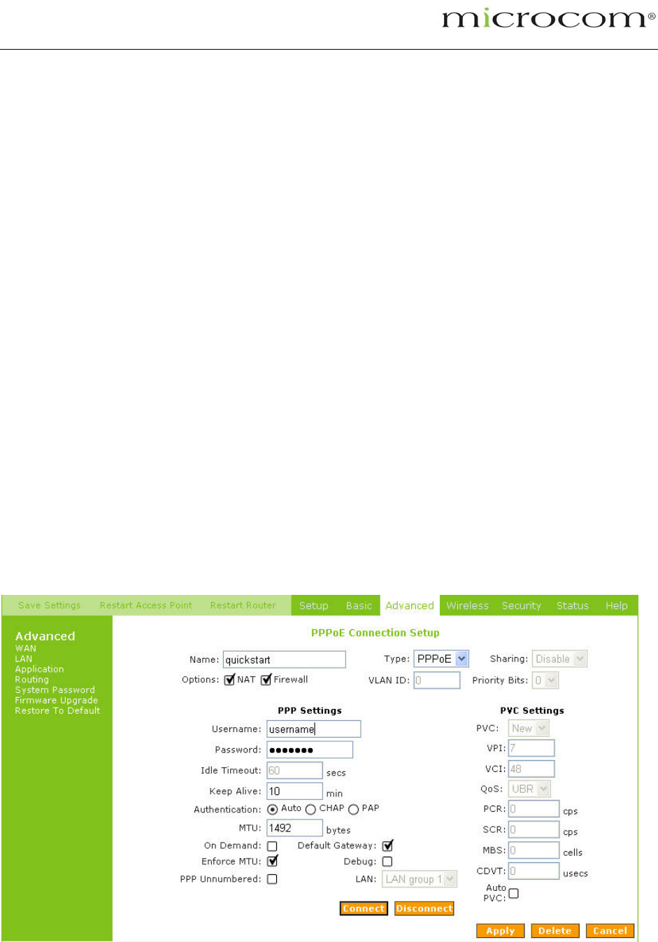 1. Username: The username for the PPPoE access; this is provided by your DSL service provider or